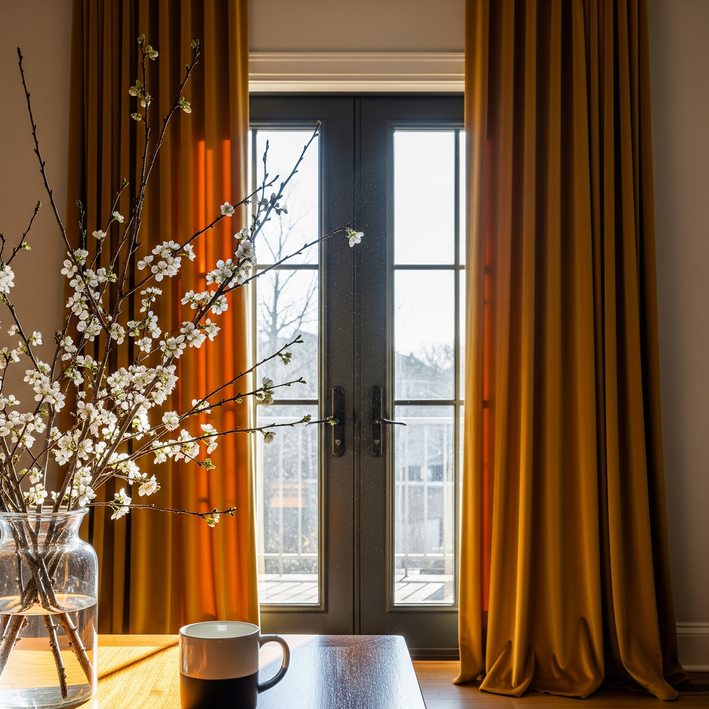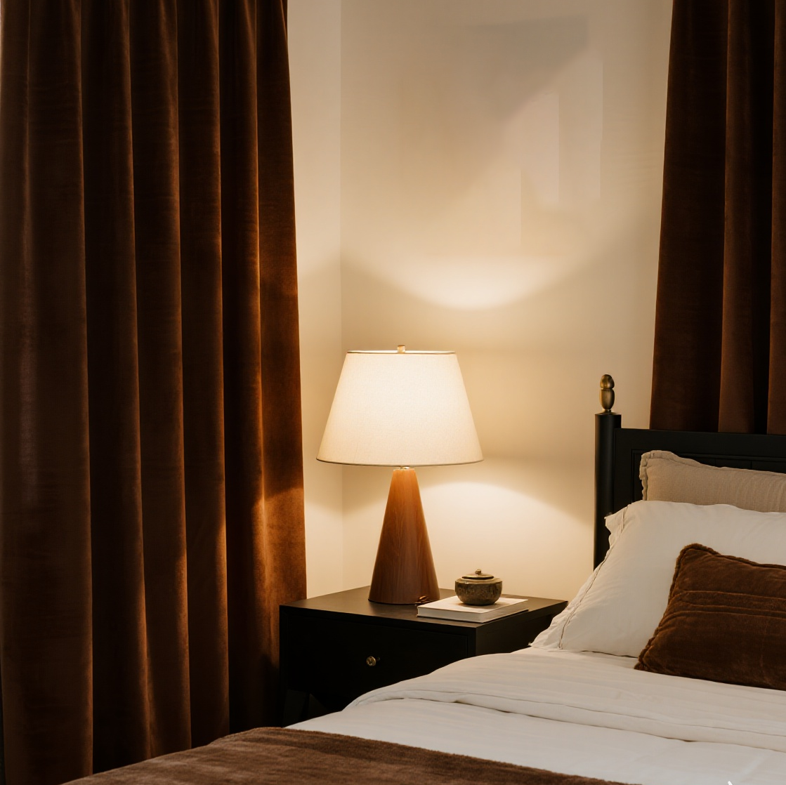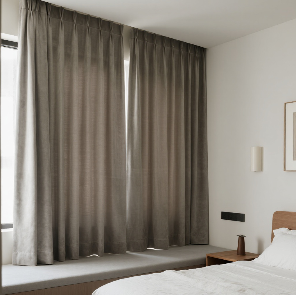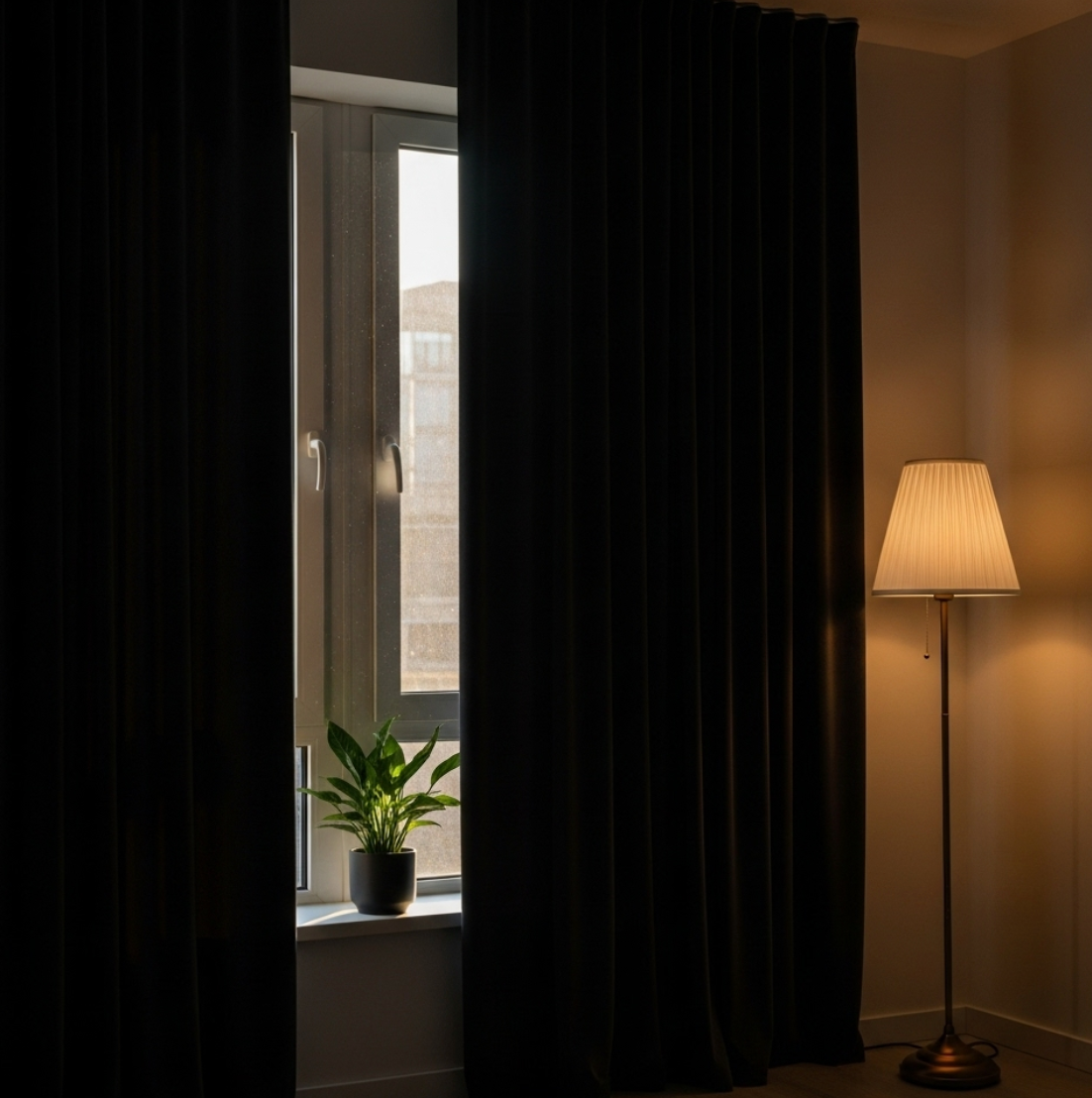 Blackout Velvet Curtains – Heavy lining blocks light and adds insulation.