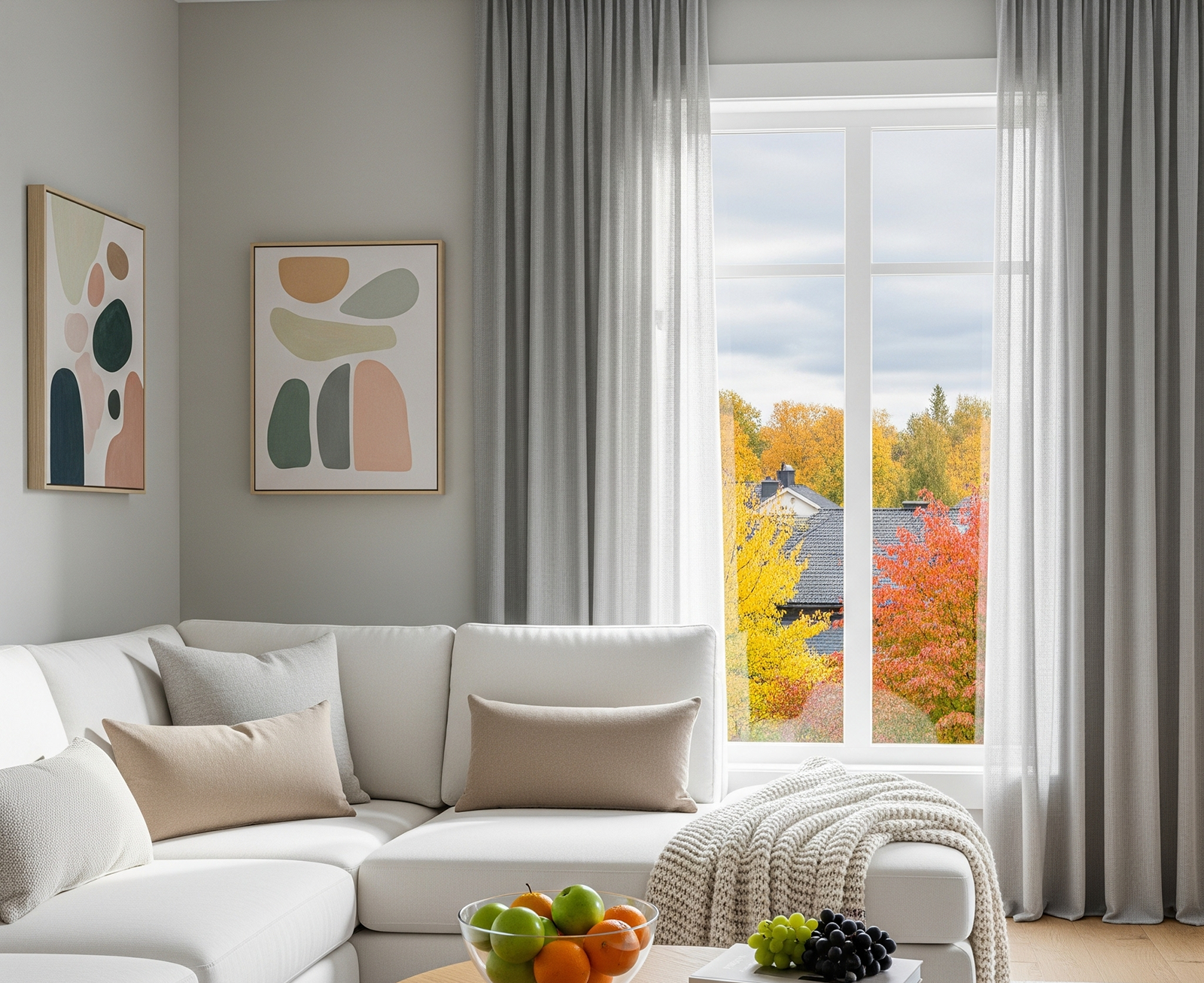 Sheer-Blend Velvet Curtains – Mixed with sheer fabrics for softness and light diffusion.