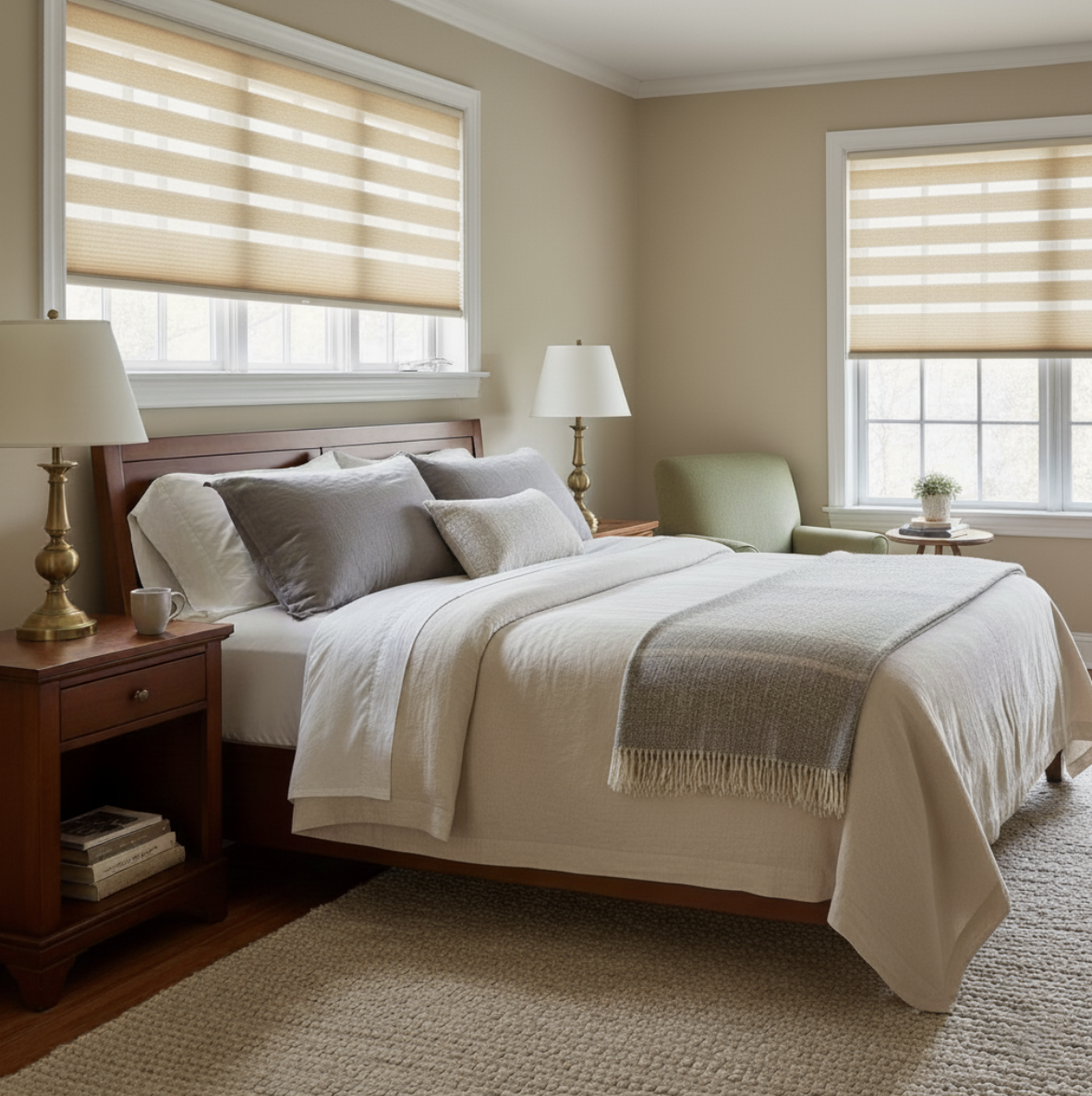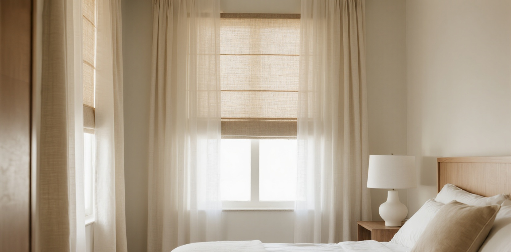 Achieve a sleek, modern bedroom look with our curtains. Offering full light control and privacy, they feature durable materials and clean, minimalistic design. Available in multiple styles and colors, custom-fitted for your windows.