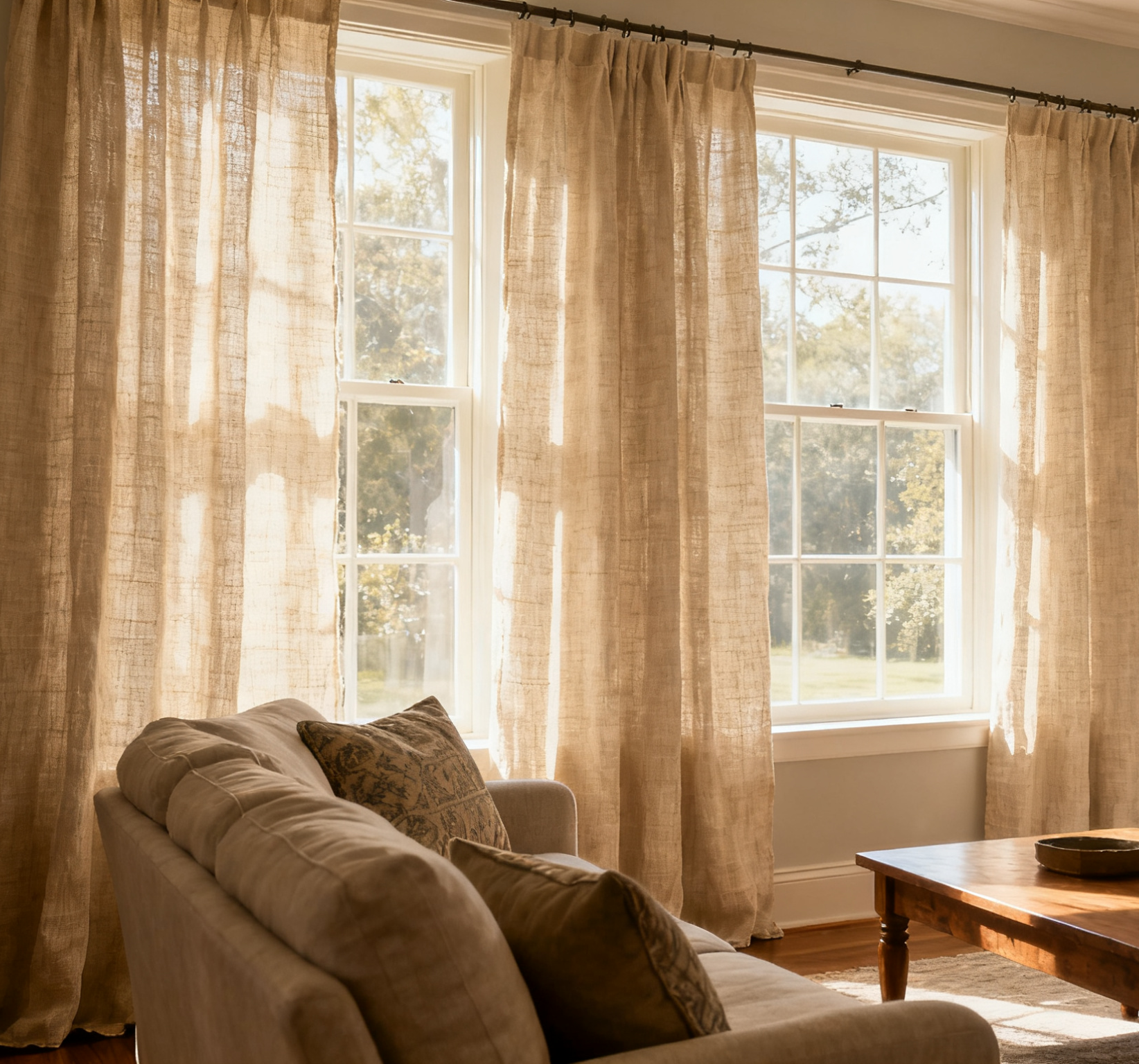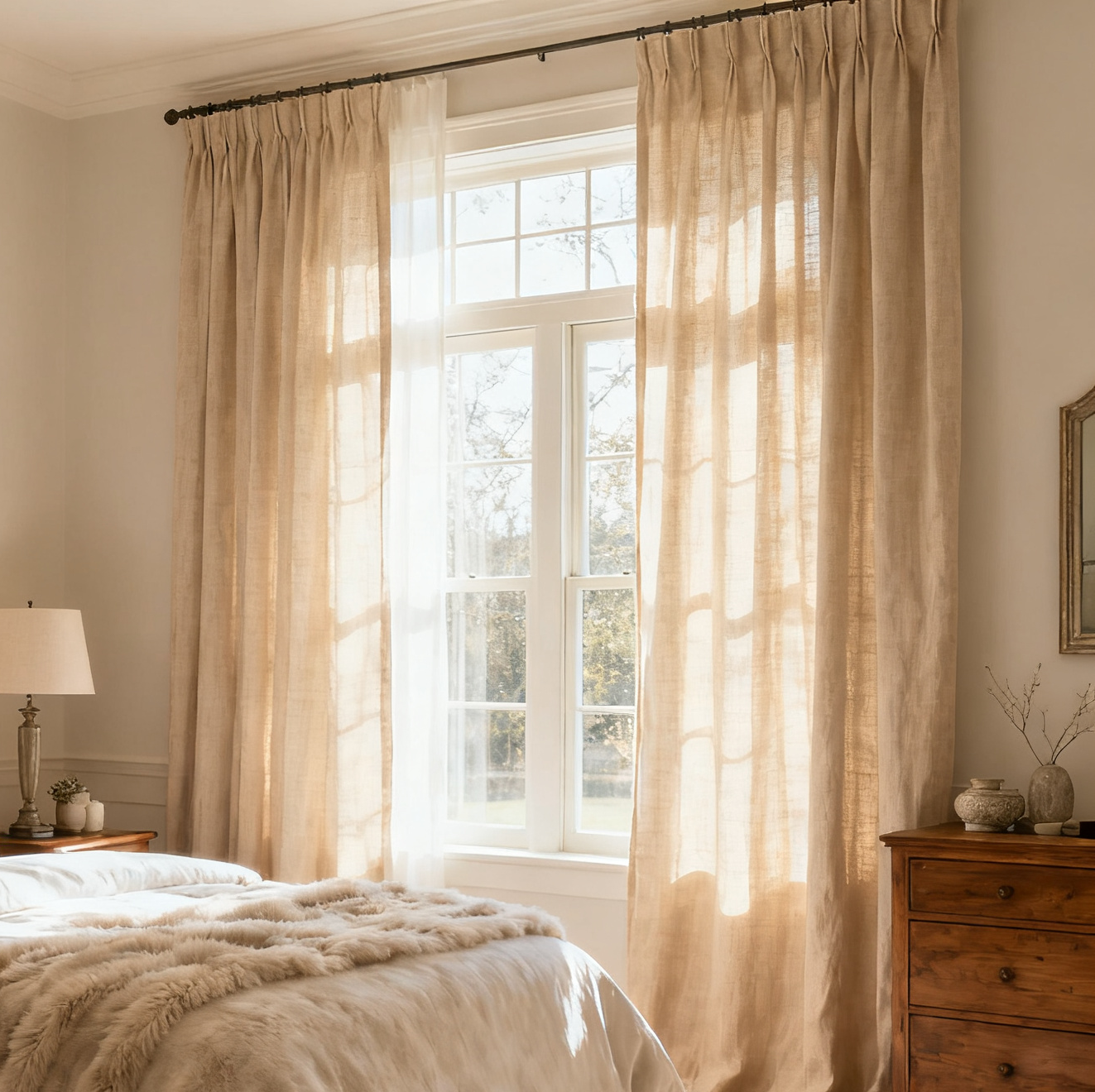 Ready-made curtains rarely hang right. They often lack the fullness or exact length needed to create that flowing, Wabi-sabi vibe. That "effortless" look actually requires precision.