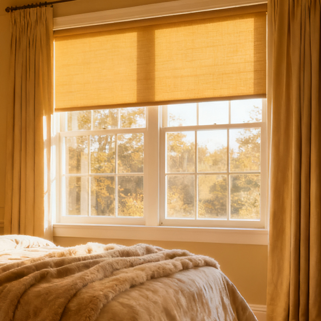 Roller shades are window coverings made of a single piece of fabric that rolls up and down on a tube, offering light control, privacy, and a clean, modern look
