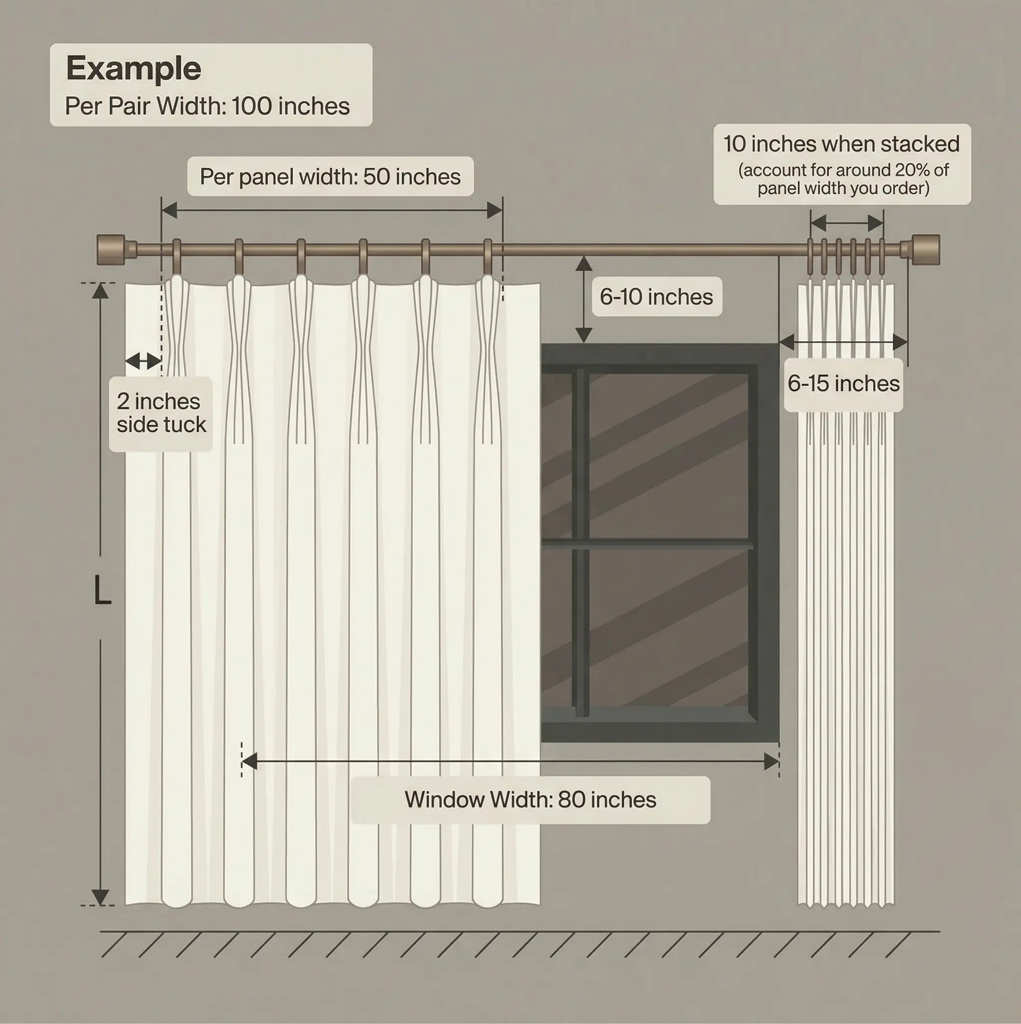 Puddling: Add 2–4 inches for deliberate fabric pooling at floor