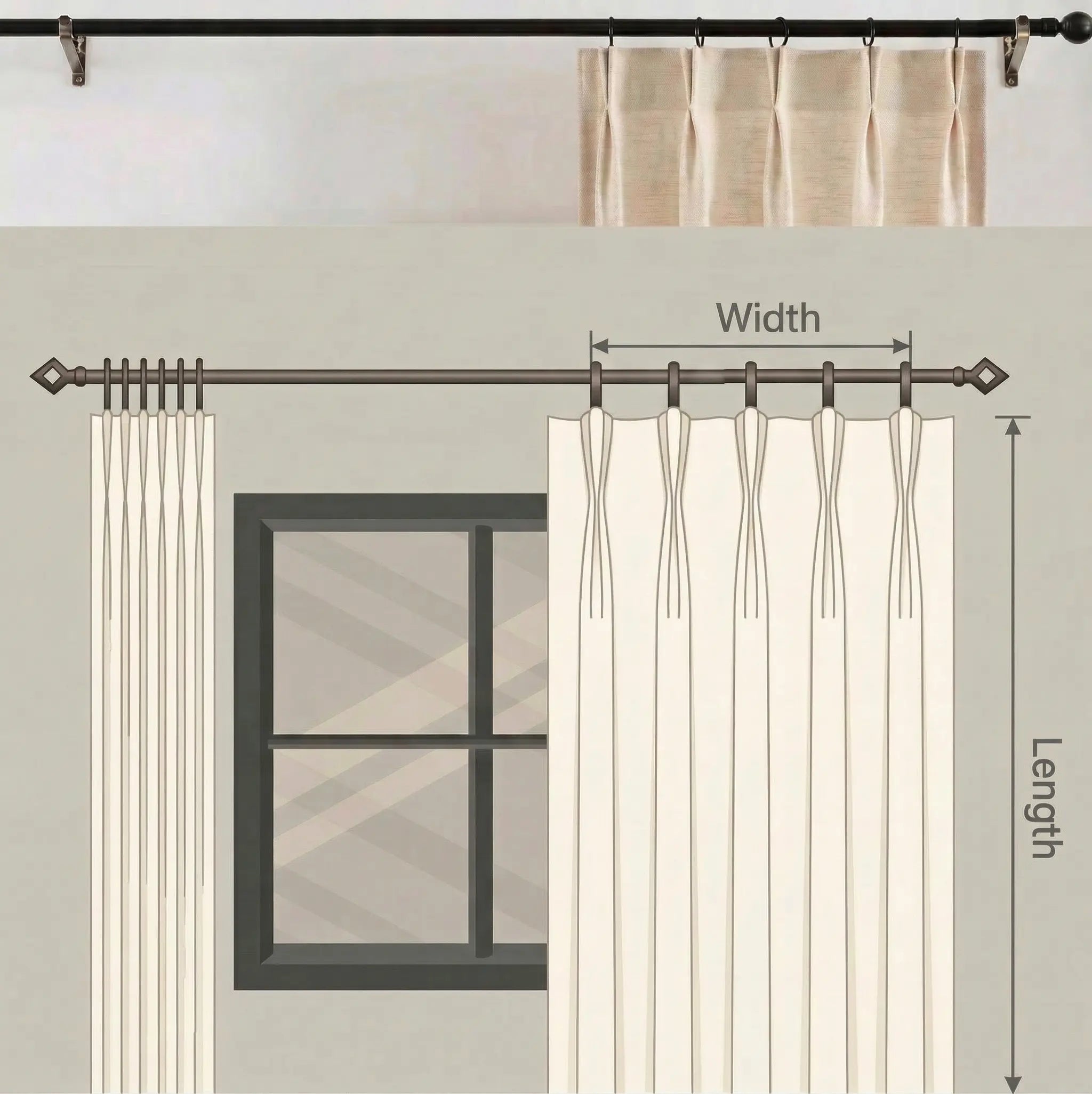- Width: Measure the width you need, ensuring it extends beyond the window frame to cover the trim and provide space for the brackets. It’s advised to add an extra 6 inches (3 inches per side) for improved light blocking and privacy.