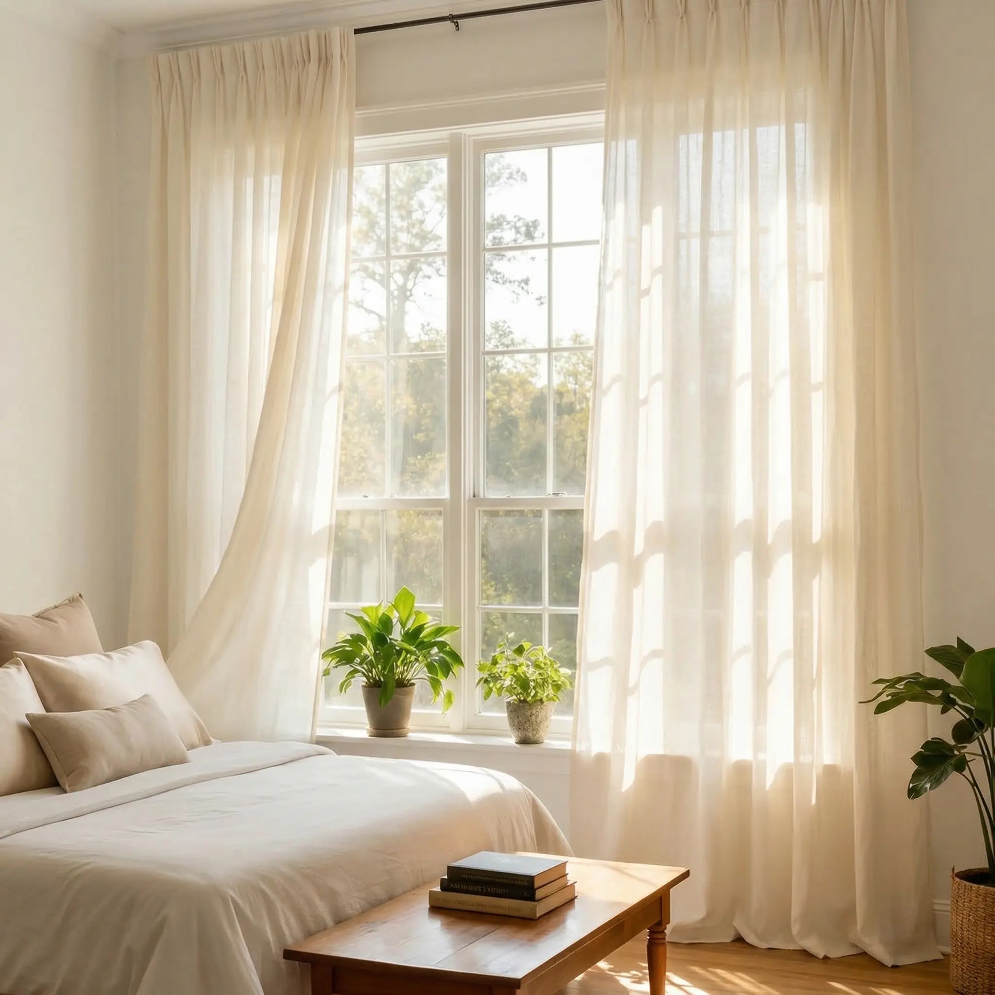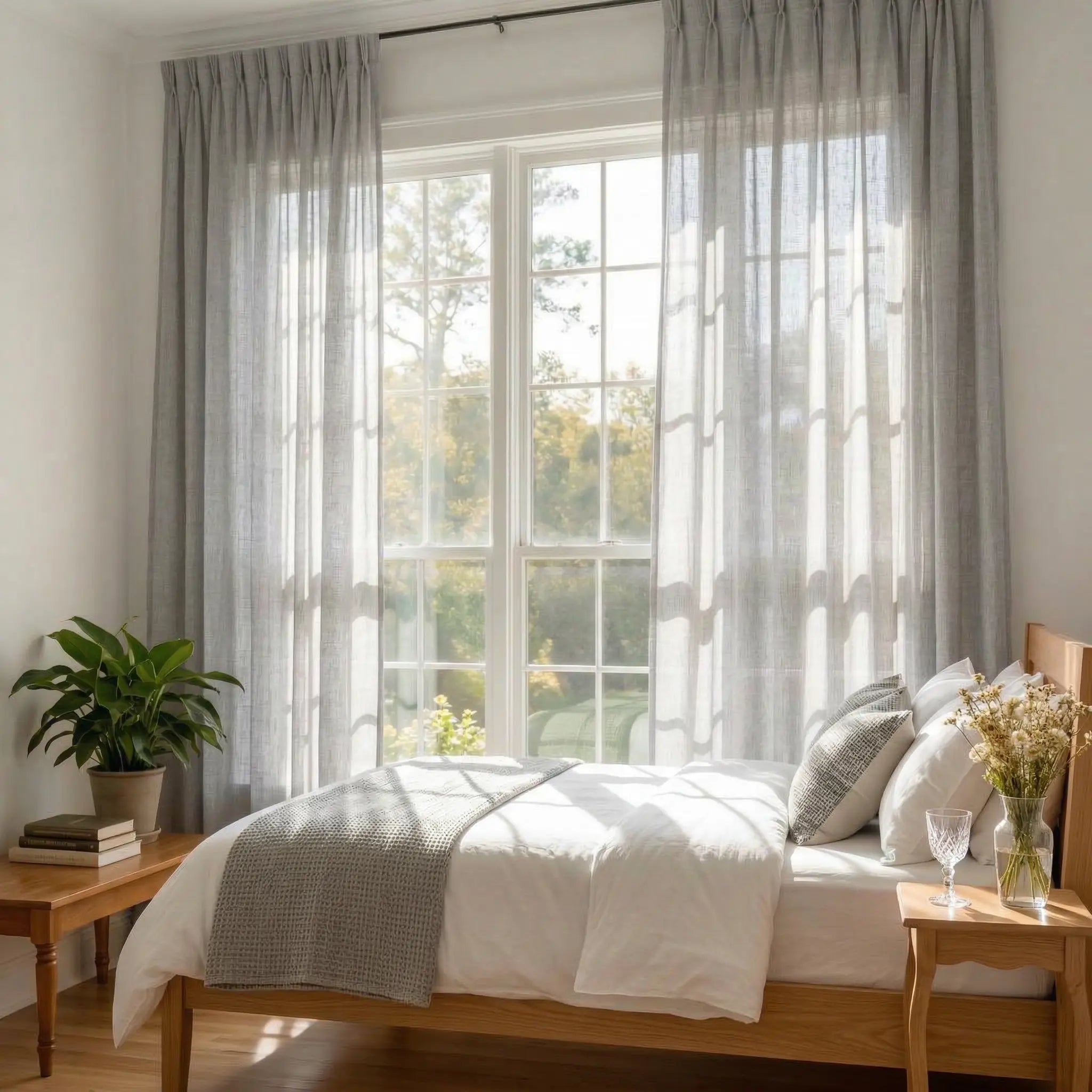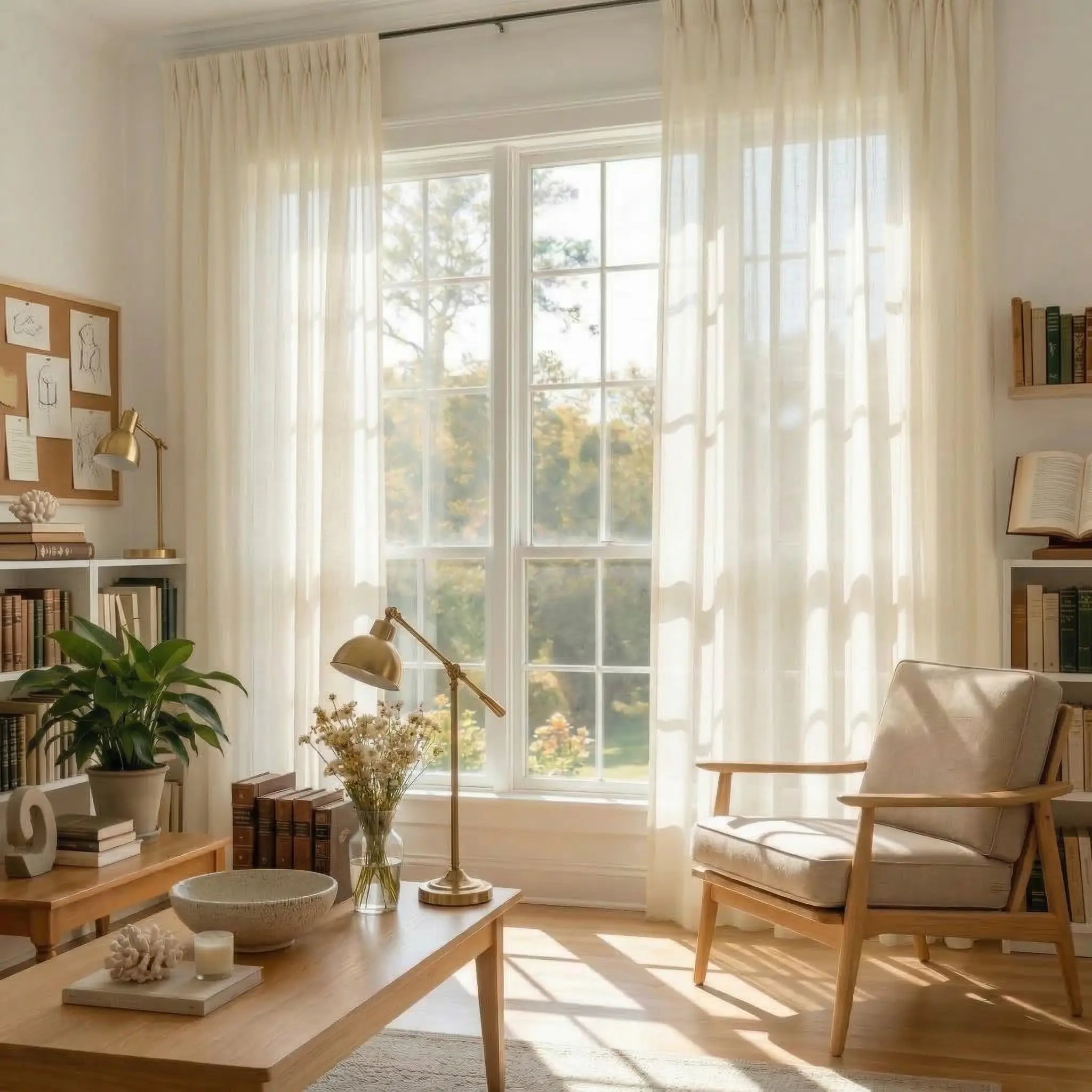 Enhance your home décor with pleated luxury linen-cotton curtains, thoughtfully crafted from a soft and refined fabric.